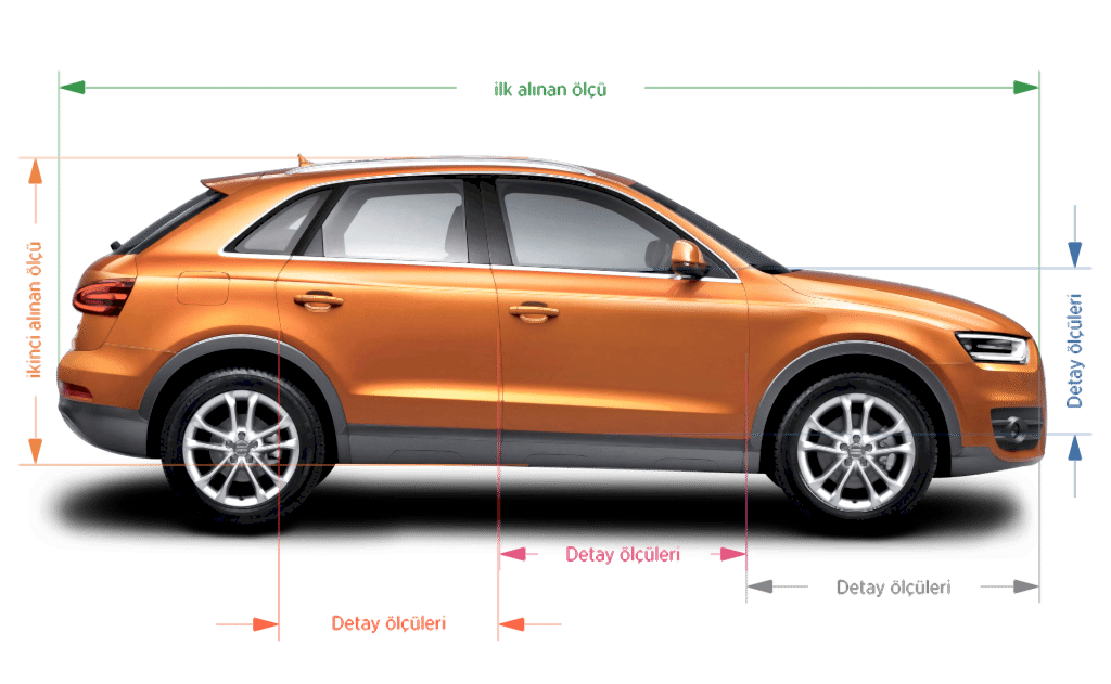 Aracın detay ölçüleri, yükseklikleri ölçülerek not alınması gerekmektedir.